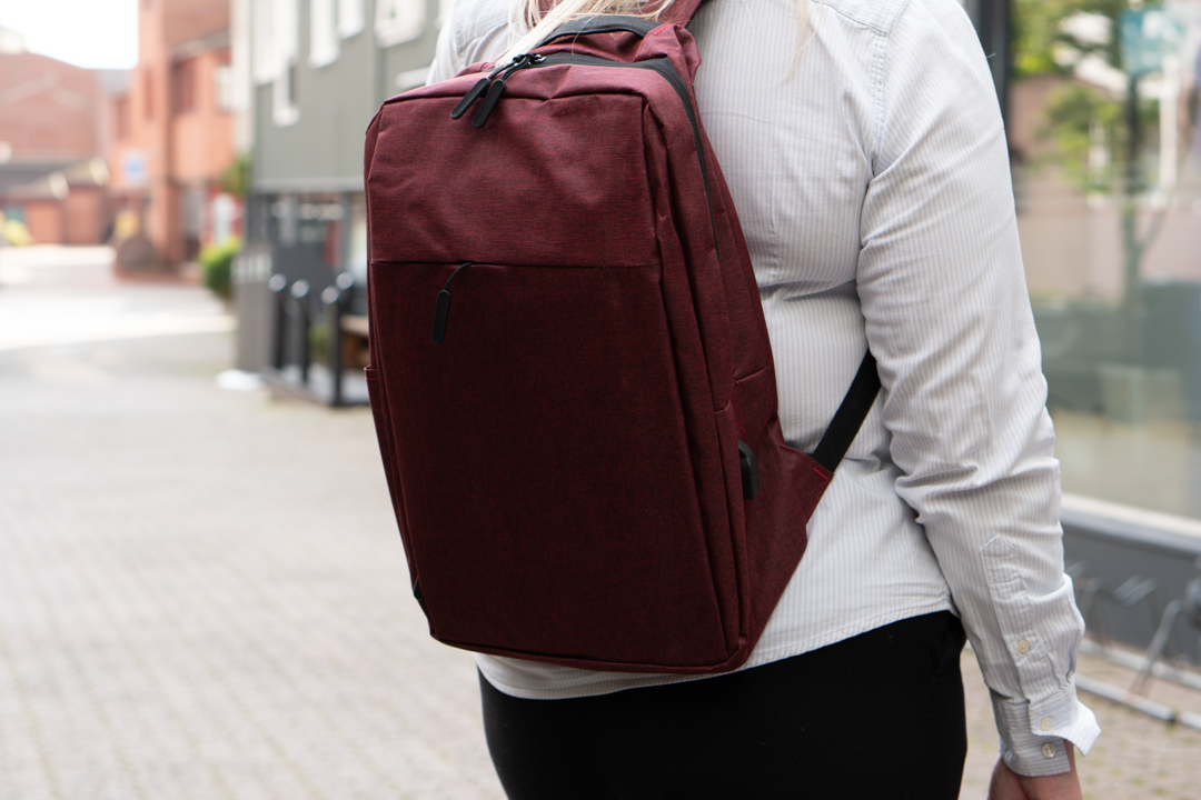 Vanntett laptop-ryggsekk med USB-ladeport for 15.6-tommers PC (RØD)